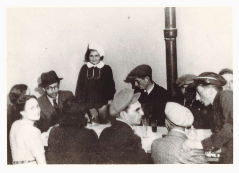 ליל הסדר בפנימיית הפליטים הבית"רים בווילנה, 1940. פנינה כרוסט שואלת את ארבע הקושיות, אביה - הבית"רי והסופר יוסף כרוסט (משמאל, חבוש כובע) - ואברהם אמפר (במרכז) מאזינים.