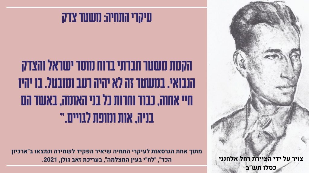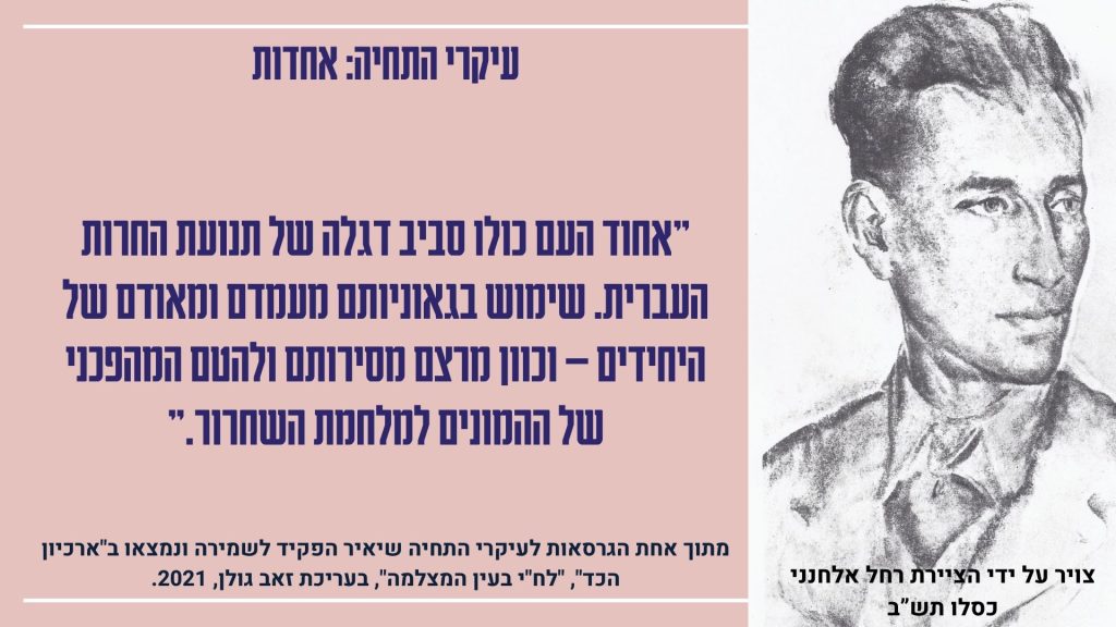 התערוכה מציגה מבחר ציטוטים מכתביו של אברהם שטרן – שירה, מסמכים רעיוניים ודברי מחתרת. התערוכה מאפשרת היכרות ישירה עם לשונו ועם עולמו המחשבתי. הציטוטים משקפים את תפיסת החירות, את עקרונות המאבק ואת הקשר ההדוק בין מחשבה לפעולה, כפי שעוצבו בכתביו של מייסד לח”י.