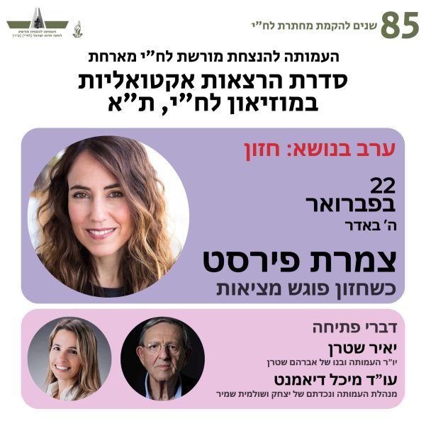 85 שנים להקמת מחתרת לח”י | צמרת פירסט: כשחזון פוגש מציאות | 22 בפברואר, ה’ באדר, 19:00